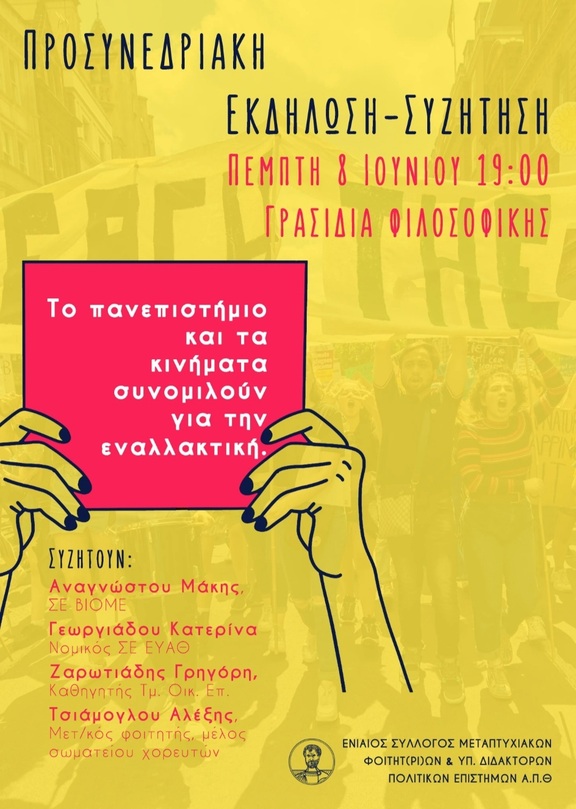 Εκδήλωση-συζήτηση: Το Πανεπιστήμιο & τα κινήματα συνομιλούν για την εναλλακτική