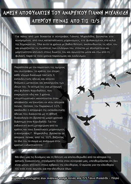 Συνέλευση αλληλεγγύης στον αναρχικό απεργό πείνας από 12/5 Γιάννη Μιχαηλίδη - Πάτρα sunelallile@proton.me