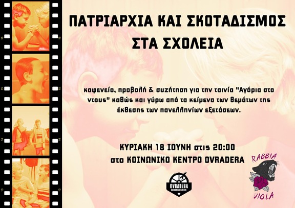 Καφενείο, προβολή και συζήτηση για την ταινία "Αγόρια στο ντουζ" καθώς και γύρω από τα κείμενα των θεμάτων της έκθεσης των πανελληνίων.