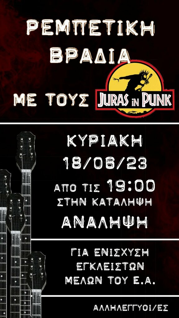 Ρεμπέτικη βραδιά με τους Juras in Punk, για την οικονομική ενίσχυση των έγκλειστων μελών του Επαναστατικού Αγώνα, Πόλας Ρούπα και Νίκου Μαζιώτη