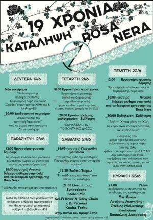 19 Χρόνια Κατάληψη Rosa Nera – Πρόγραμμα Εκδηλώσεων των Γενεθλίων