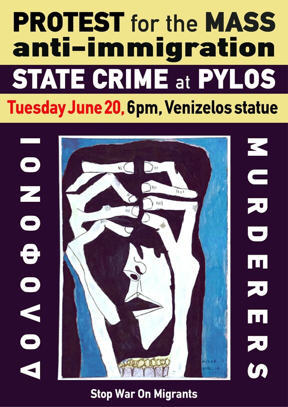 Ακούμε από τα κανάλια για την «Τραγωδία» της Πύλου ή για το «Δυστύχημα». Αυτοί είναι οι τίτλοι που προσπαθούν να εξωραΐσουν την κρατική δολοφονία 550 ανθρώπων. Στις 14 Ιουνίου 2023 κοντά στην Πύλο βούλιαξε πλοιάριο με εκατοντάδες μετανάστ(ρι)ες με αποτέλεσμα μέχρι στιγμής πάνω από εκατό πνιγμένους και αρκετές εκατοντάδες αγνοούμενους, ανάμεσά τους και πολλά παιδιά (υπολογίζονται πάνω από 100). Η αρχική εκδοχή ήταν ότι ενώ το ελληνικό λιμενικό είχε ενημερωθεί από τη Frontex από τις 14:30 το μεσημέρι για το πλοιάριο, και ενώ το προσέγγισε, άφησε αυτούς του ανθρώπους να πνιγούν μπροστά στα μάτια του, επειδή υποτίθεται εκείνοι ζήτησαν να μην τους βοηθήσουν (παρότι υπάρχουν δεκάδες κλήσεις προς το τηλέφωνο alert που λειτουργεί στη Μεσόγειο και οι άνθρωποι φαίνονται στις φωτογραφίες να ζητούν βοήθεια με τα χέρια σηκωμένα). Και ενώ αυτή η εκδοχή αποτελούσε σε κάθε περίπτωση κρατική δολοφονία, σοκαρισμένοι ενημερωθήκαμε ότι οι άνθρωποι αυτοί δεν εγκαταλείφθηκαν απλώς να πεθάνουν από το ελληνικό λιμενικό, αλλά δολοφονήθηκαν ευθέως. Από τις μαρτυρίες των επιζώντων αποδεικνύεται ότι το λιμενικό ρυμούλκησε το πλοιάριο και ενώ οι άνθρωποι που επέβαιναν σε αυτό δεν είχαν πιει νερό ούτε είχαν φάει επί 4 μέρες, ενώ παρακαλούσαν για βοήθεια, προσπάθησε να τους τραβήξει και να τους πετάξει στα ιταλικά ύδατα, δηλαδή όπως κάνει καθημερινά πετώντας ανθρώπους σε ακυβέρνητες σχεδίες ή βάρκες χωρίς μηχανές, εγκαταλείποντας τους να πεθάνουν. Στην προσπάθεια τους αυτή βούλιαξαν το σκάφος και στη συνέχεια εγκατέλειψαν όλους αυτούς τους ανθρώπους να πεθάνουν. Στην Ελλάδα 2.0 του Μητσοτάκη μπορείς να δολοφονήσεις εν ψυχρώ 550 ανθρώπους και να μην διωχθείς καν, για τα μάτια του κόσμου.
