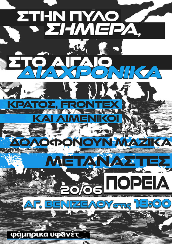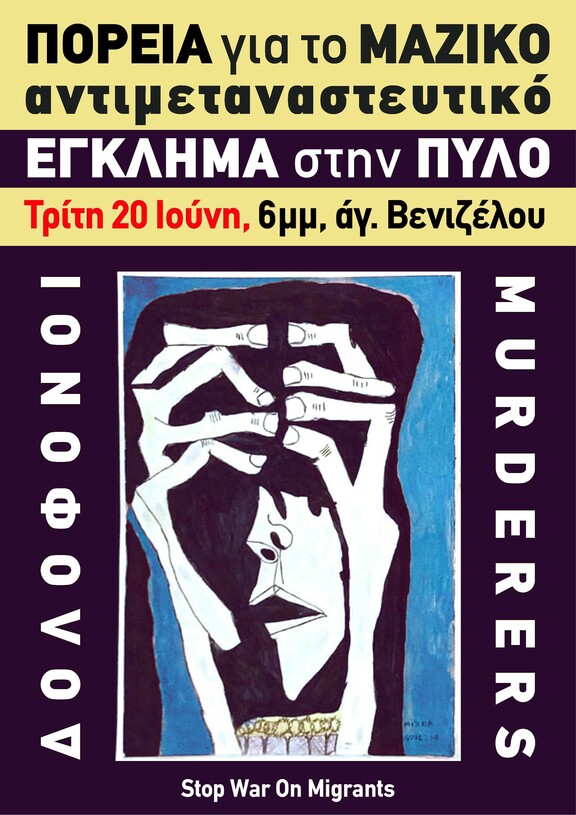 Αλλη μια μαζική δολοφονία σημειώθηκε την Τετάρτη, ίσως το πιο θανατηφόρο ναυάγιο στη Μεσόγειο από όσα έχουν φτάσει στο φως της δημοσιότητας. Αυτή την φορά έξω από την Πύλο, κοντά στο πιο βαθύ σημείο της Μεσογείου, πνίγηκαν εκατοντάδες μετανάστες με τον αριθμό των θυμάτων συνεχώς να αυξάνεται. Για άλλη μια φορά η κατάσταση είναι ξεκάθαρη. Ο πόλεμος του ελληνικού κράτους εναντίον των μεταναστ(ρι)ών συνεχίζεται αδιάκοπα με την πραγματικότητα να χωράει όλο και λιγότερους/ες.