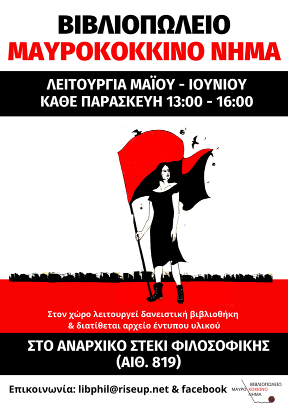 Λειτουργία βιβλιοπωλείου Μαυροκόκκινο Νήμα για το δίμηνο Μαΐου- Ιουνίου στην φιλοσοφική σχολή Αθηνών.