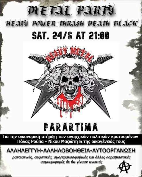 Metal party οικονομικής στήριξης των αναρχικών πολιτικών κρατούμενων Ρούπα & Μαζιώτη