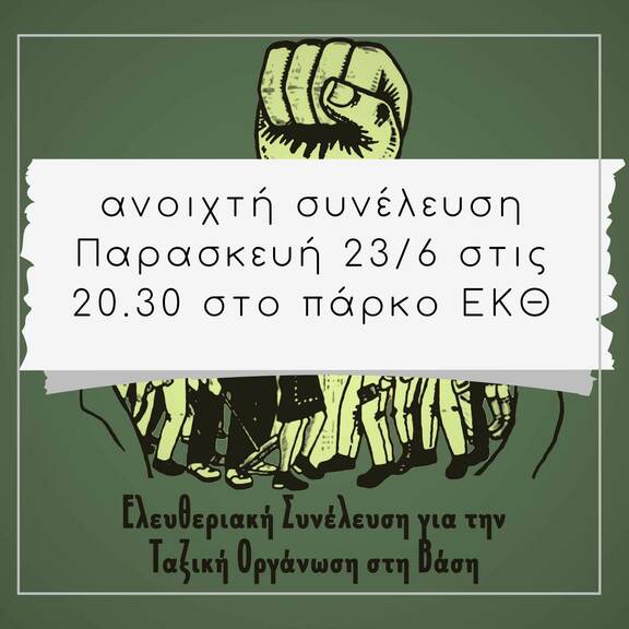 Ανοιχτή συνέλευση από την Ελευθεριακή Συνέλευση για την Ταξική Οργάνωση στη βάση, στο πάρκο απέναντι από το ΕΚΘ.