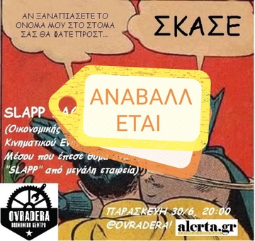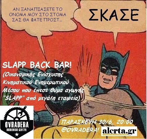 (Αναβαλλεται) SLAPP BACK! Bar οικονομικής ενίσχυσης για υπόθεση Slapp