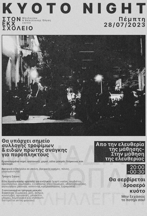 Kyoto night & συλλογή ειδών πρώτης ανάγκης για πυρόπληκτους/ες