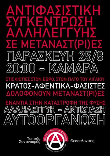 Συγκέντρωση αλληλεγγύης στους μετανάστες, Παρασκευή 25/8, Καμάρα 20:00