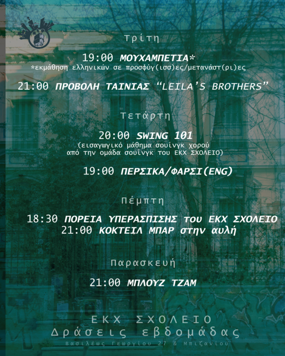 Δράσεις και πρόγραμμα εβδομάδας του Ελεύθερου Κοινωνικού Χώρου Σχολείο