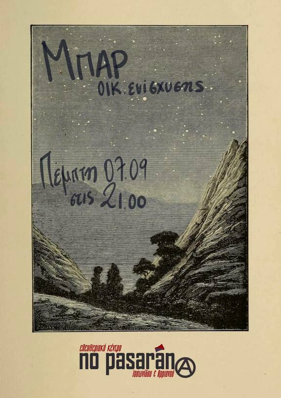 [Bar] οικονομικής ενίσχυσης του ελευθεριακού κέντρου ''No pasaran'' Πέμπτη 7/09 στις 21:00