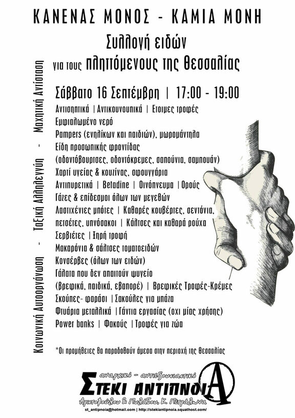 *Το Σάββατο 16 Σεπτέμβρη στις 17:00 θα πραγματοποιείτε και η συνέλευση του αναρχικού - αντιεξουσιαστικού στεκιού Αντίπνοια