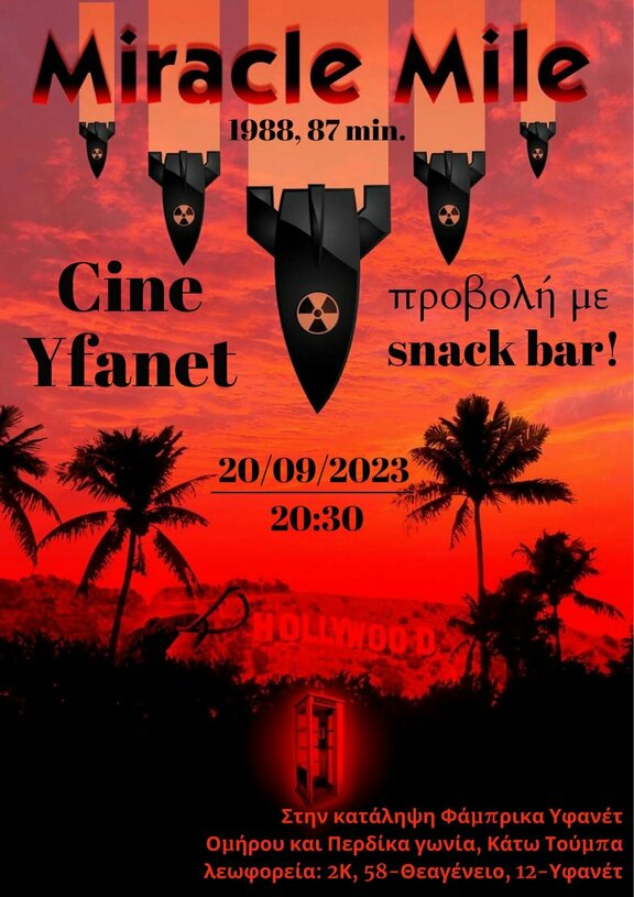 Προβολή "Miracle Mile" (1988) + snack bar Cine Yfanet