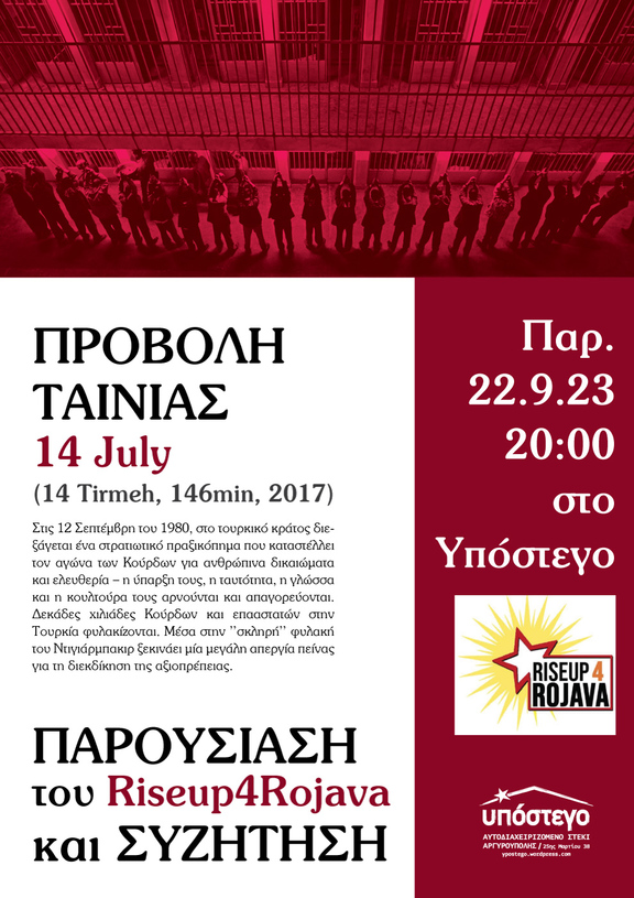 (Αναβολή) Προβολή της ταινίας "14 July", παρουσίαση του Riseup4Rojava...