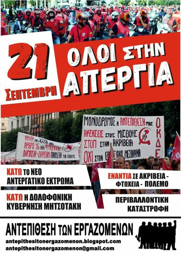 Όλοι στην απεργία Πέμπτη 21 Σεπτέμβρη