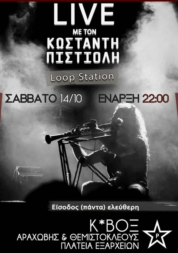 Live με τον Κωσταντή Πιστιόλη (Loop Station) στο Κ*ΒΟΞ για δικαστικά έξοδα και αποστολές αλληλεγγύης στη Θεσσαλία.