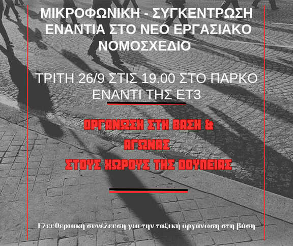 [Αναβαλλεται] Μικροφωνική συγκέντρωση ενάντια στο νέο εργασιακό νομοσχέδιο