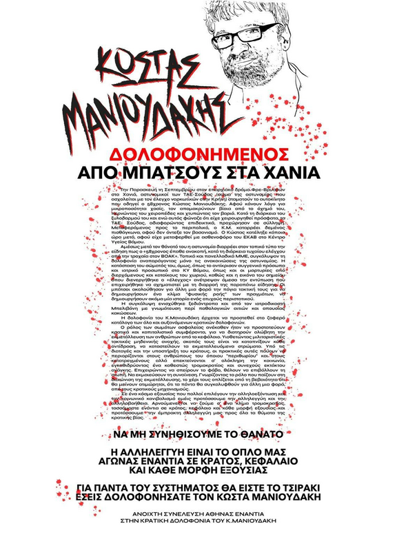 ΔΕΝ ΞΕΧΝΑΜΕ - ΔΕ ΣΥΓΧΩΡΟΥΜΕ ΤΗ ΔΟΛΟΦΟΝΙΑ ΤΟΥ ΚΩΣΤΑ ΜΑΝΙΟΥΔΑΚΗ