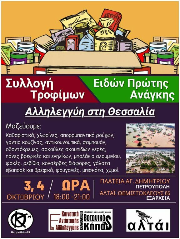 Συλλογή τροφίμων & ειδών πρώτης ανάγκης για τους/τις πλημμυροπαθείς