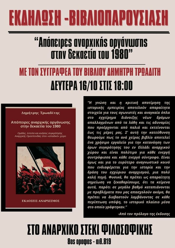 Αναρχικό Στέκι Φιλοσοφικής αίθουσα 819, 8ος όροφος Πανεπιστημιούπολη Ζωγράφου