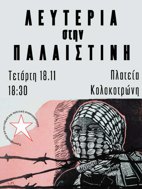 Όλοι-ες στους δρόμους! Λευτεριά στην Παλαιστίνη- Νίκη στα όπλα της Αντίστασης - Ξεσηκωμός ενάντια στην ιμπεριαλιστική και σιωνιστική βαρβαρότητα και στη συμμετοχή του ελληνικού κράτους σε αυτήν -Διαδήλωση προς τις πρεσβείες ΗΠΑ και ΕΕ, Τετάρτη 18/10 Σύνταγμα 7μμ, προσυγκέντρωση 6.30μμ Πλ. Κολοκοτρώνη - Συμμετέχουμε στο μπλοκ της Συνέλευσης Αλληλεγγύης στην Παλαιστινιακή Αντίσταση