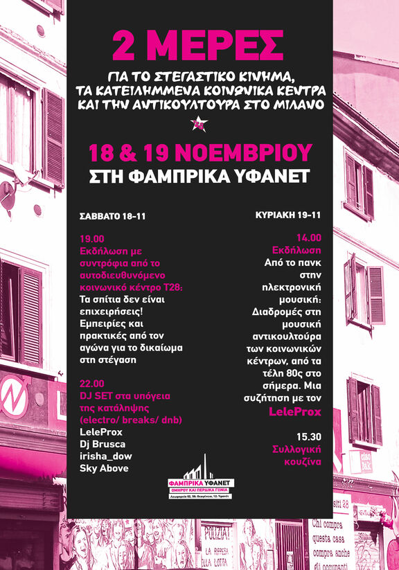 2 Μέρες για το στεγαστικό κίνημα, τα κατειλημμένα κοινωνικά κέντρα και την αντικουλτούρα στο Μιλάνο.