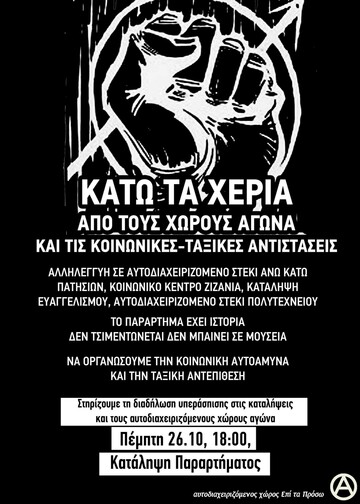 Κάτω τα χέρια από τους χώρους αγώνα και τις κοινωνικές - ταξικές αντιστάσεις