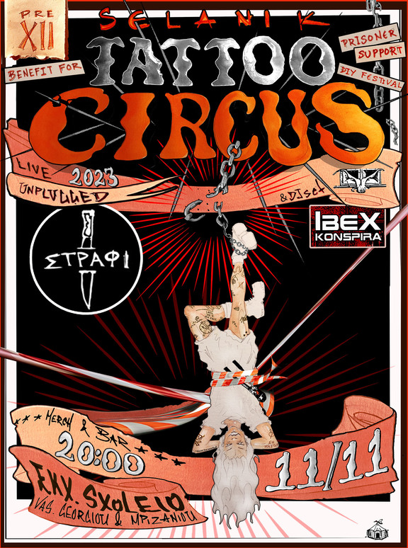 Στις 11 Νοέμβρη στην κατάληψη Ελεύθερος Κοινωνικός Χώρος Σχολείο θα πραγματοποιηθεί live με τους Στράφι και μετά θα ακολουθήσει μπαρ για την οικονομική ενίσχυση του Selanik Tattoo Circus! Όλα αυτά μέχρι τις 12.30 οπότε ελάτε νωρίς !