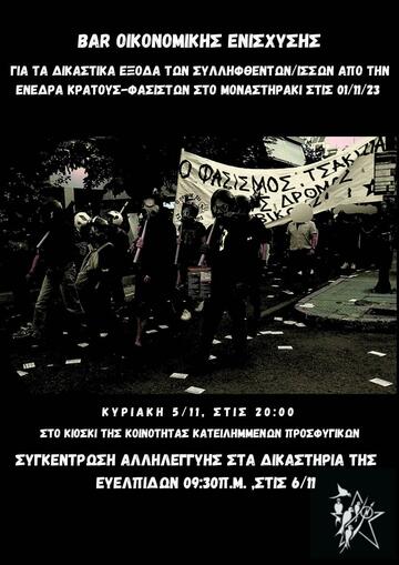 για τα δικαστικά έξοδα των συλληφθεισών/έντων από την ενέδρα κράτους - φασιστών στο Μοναστηράκι στις 1/11/23