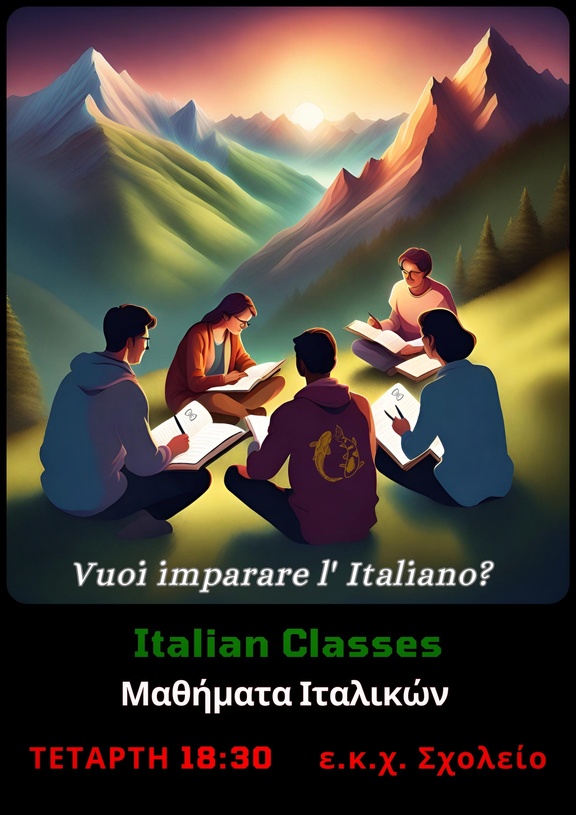 Ελάτε να μάθουμε μαζί την Ιταλική γλώσσα, μέσα από συζήτηση, ασκήσεις και καθημερινά παραδείγματα. Η γνώση ξένων γλωσσών ήταν και θα είναι ένας άμεσος τρόπος να έρχονται πιο κοντά οι άνθρωποι και να καταννοούν καλύτερα όχι μόνο τις λέξεις, αλλά και τον τρόπο σκέψης άλλων λαών.