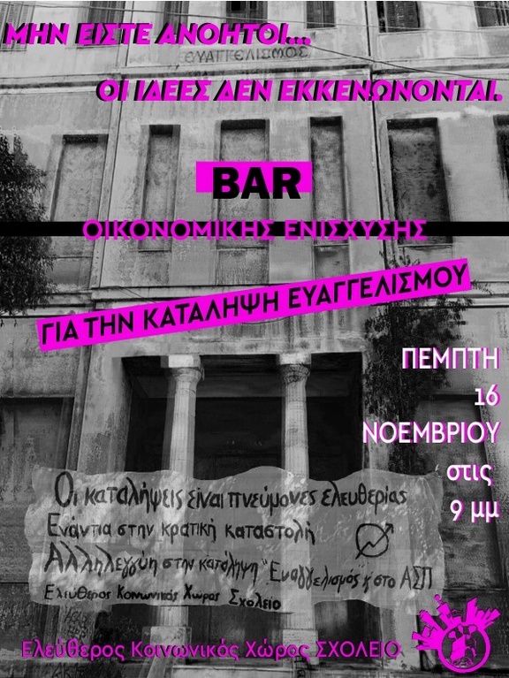 Bar οικονομικής ενίσχυσης της κατάληψης Ευαγγελισμού
