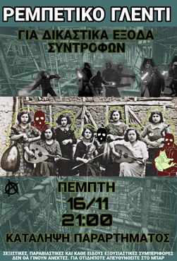 Ρεμπέτικο Γλέντι, Πέπμτη 16 Νοεμβρίου στην Κατάληψη Παραρτήματος. Τα έσοδα θα διατεθούν για δικαστικά έξοδα συντρόφων.