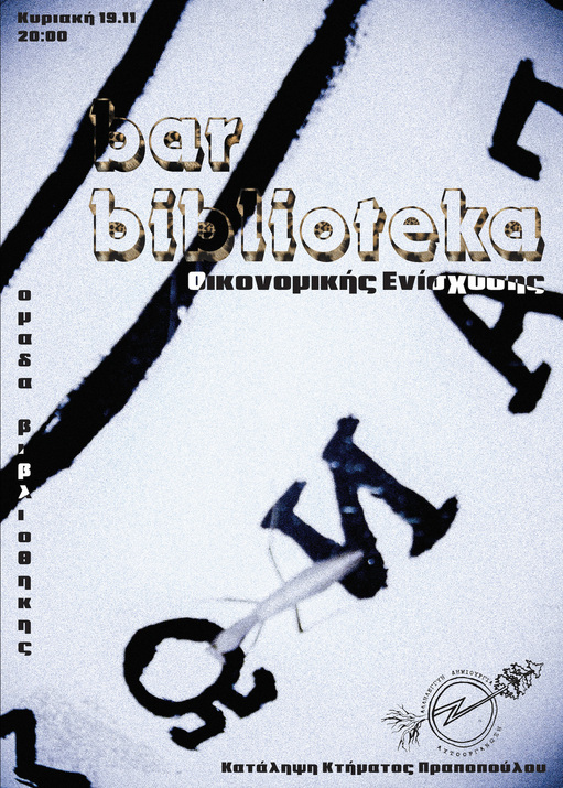 Bar-Party για την οικονομική ενίσχυση της αυτοδιαχειριζόμενης ομάδας βιβλιοθήκης της Κατάληψης Κτήματος Πραποπούλου, την Κυριακή 19 Νοεμβρίου στις 20:00.