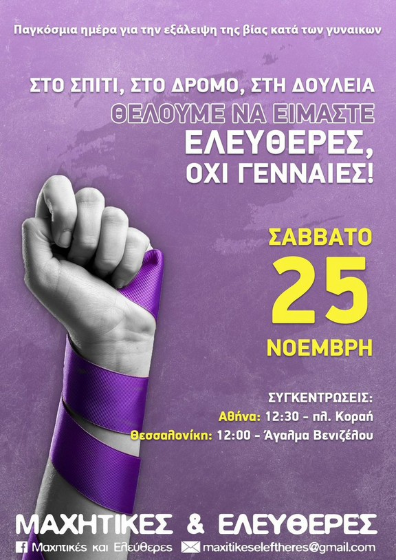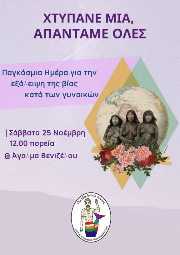 Την 25η Νοέμβρη συγκεντρωνόμαστε στη Θεσσαλονίκη στις 12 το μεσημέρι στο άγαλμα Βενιζέλου και διαδηλώνουμε ενάντια στη βία που δεχόμαστε γυναίκες και θηλυκότητες.