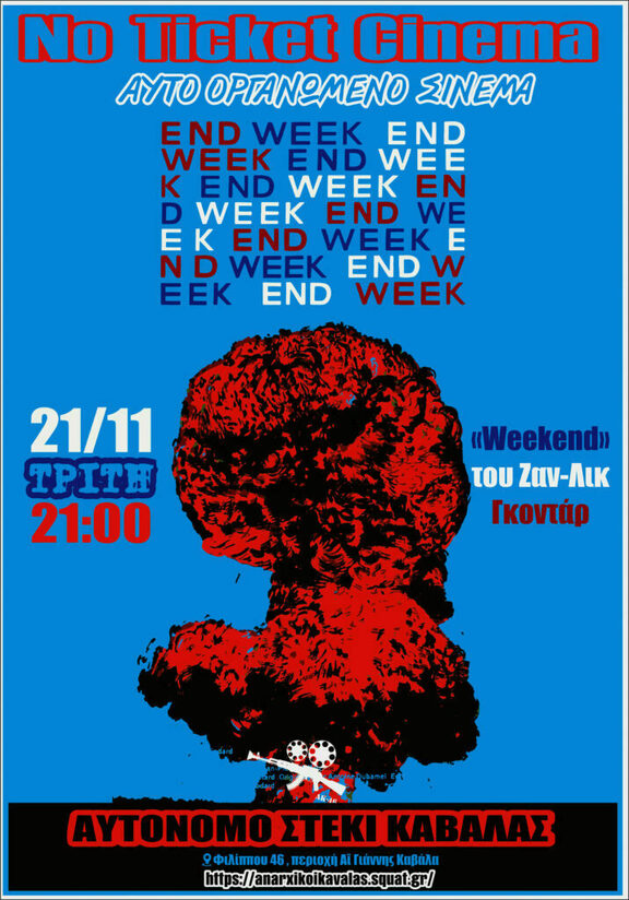 Αυτό ήταν για τον Ζαν-Λικ Γκοντάρ το «Week-end», μια ταινία πού όχι μόνο σφράγισε το τέλος της πρώτης περιόδου του «αστικού σινεμά» της καριέρας του, αλλά προ οικονόμησε, ένα χρόνο πριν, το ξέσπασμα του Μάη του 68, αυτού του σαρωτικού κινήματος αμφισβήτησης, του οποίου ο Γάλλος σκηνοθέτης υπήρξε ταγός και πρωτοπόρος.