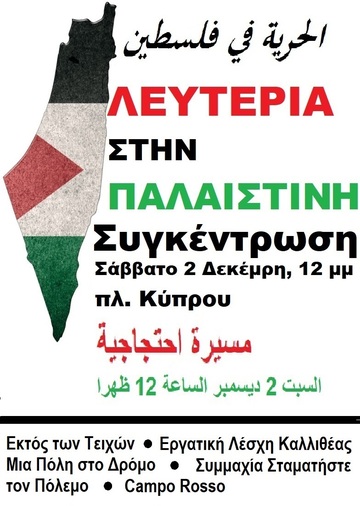 Καλούμε σε συγκέντρωση αλληλεγγύης στον Παλαιστινιακό λαό το Σάββατο 2 Δεκέμβρη, 12 το μεσημέρι στην πλατεία Κύπρου.