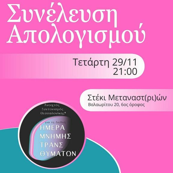 Συνέλευση Απολογισμού των δράσεων της Ημέρας Τρανς Μνήμης