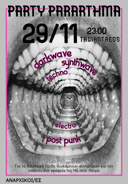 Πάρτυ "ΤΑΓΙΑΝΤΡΕΟΣ" στην κατάληψη Παραρτήματος ( Κορίνθου & Αράτου) για τα δικαστικά έξοδα των διωκόμενων συντρόφων για την επίθεση στα γραφεία της ΝΔ στην Πάτρα, μετά την εκκένωση της κατάληψης Ντουγρου στην Λάρισα. (Δική 1/12)