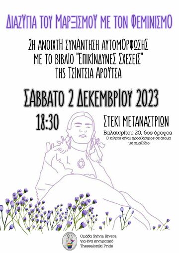 Συνεχίζουμε τις συναντήσεις του φετινού κύκλου αυτομόρφωσης της ομάδας Sylvia Rivera, πάνω στο βιβλίο της Cinzia Arruzza "Επικίνδυνες σχέσεις: Γάμοι και διαζύγια μαρξισμού και φεμινισμού". Στη συνάντηση αυτή συζητάμε με αφορμή το 2ο κεφάλαιο του έργου, με τίτλο «…και διαζύγια» (σ. 67-87).