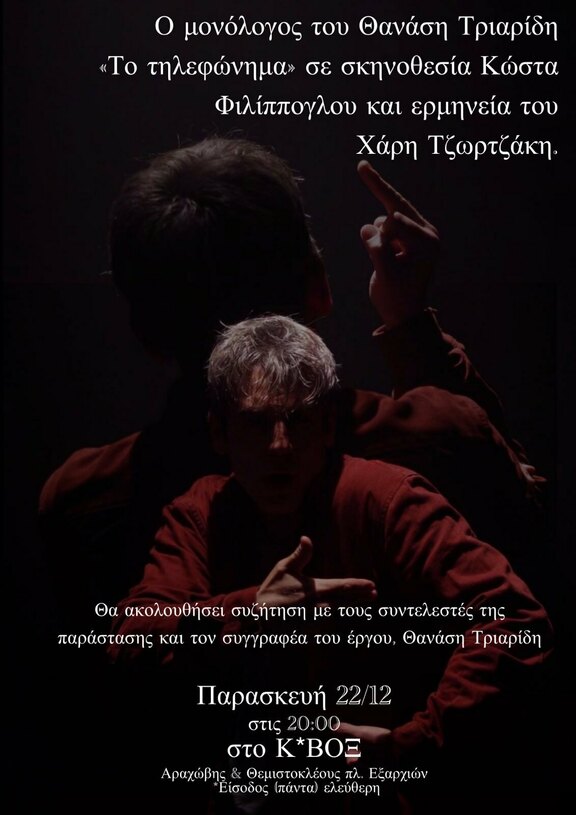 Ρουβίκωνας: Ο μονόλογος του Θανάση Τριαρίδη 'Το τηλεφώνημα' σε σκηνοθεσία Κώστα Φιλίππογλου και ερμηνεία του Χάρη Τζωρτζάκη στο Κ*ΒΟΞ