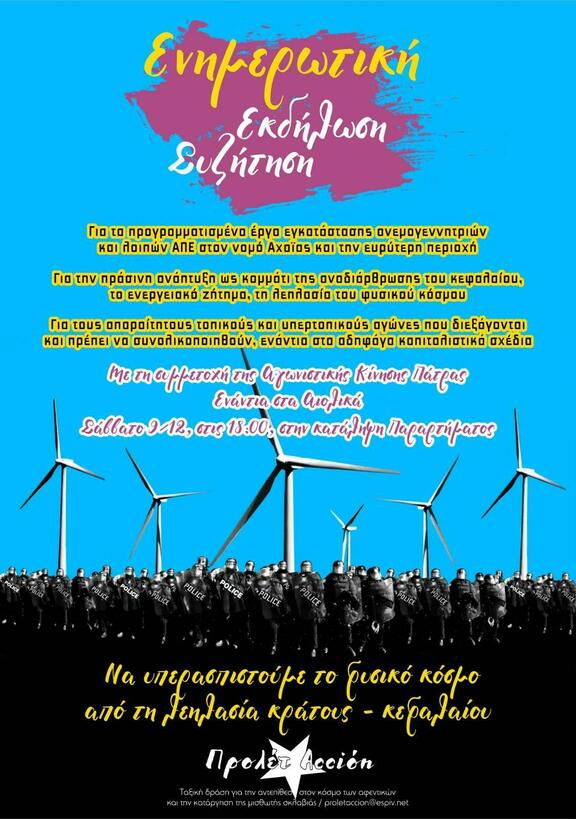 Ενημέρωση-Εκδήλωση-Συζήτηση για τα αιολικά στο Ν.Αχαΐας και την ευρύτερη περιοχή