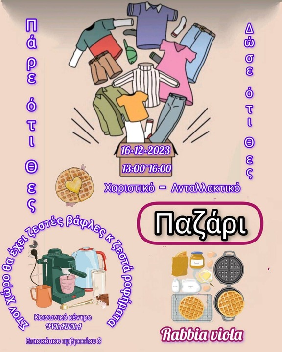 Ανταλλακτικό και χαριστικό παζάρι από την ελευθεριακή φεμινιστική συλλογικότητα Rabbia Viola.
