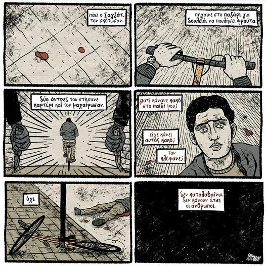 17 Γενάρη 2013. Ο εργάτης μετανάστης Σαχζάτ Λουκμάν βγήκε με το ποδήλατό του για να πάει στη δουλειά του. Εκείνη την ώρα διάλεξαν οι χρυσαυγίτες Σεργιόπουλος και Λιακόπουλος να βγουν για «κυνήγι». Ήταν αποφασισμένοι και προετοιμασμένοι να σκοτώσουν με σχέδιο και μίσος. Βρήκαν τον Σαχζάτ και με απανωτές μαχαιριές τον σκότωσαν, στη διασταύρωση Τριών Ιεραρχών και Φυλασίων, στα Πετράλωνα. Αδίστακτα, στο φως της μέρας.