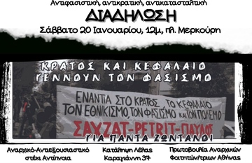 - Τετάρτη 17 Ιανουαρίου, 19:00 - Συγκέντρωση στο σημείο της δολοφονίας του Σαχζάτ Λουκμάν στα Άνω Πετράλωνα