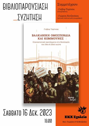 Οι εκδόσεις Αυτολεξεί και το Σχολείο σας καλούν στην παρουσίαση του βιβλίου "Βαλκανική Ομοσπονδία και Κομμούνες: Επαναστατικά προτάγματα στη Βουλγαρία του 19ου & 20ού αιώνα" (Αυτολεξεί, 2023).