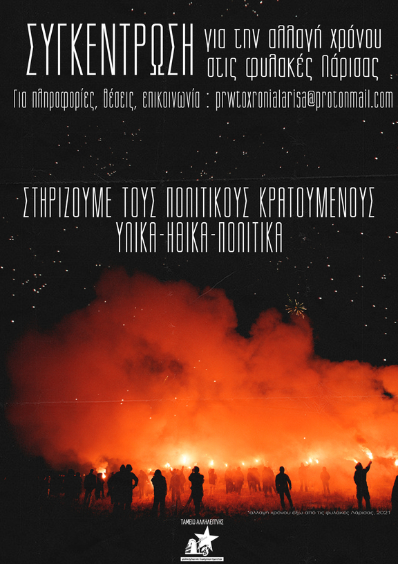 Και φέτος, παραμονή πρωτοχρονιάς, θα βρεθούμε δίπλα στους κοινωνικούς και πολιτικούς κρατούμενους στις φυλακές Λάρισας.