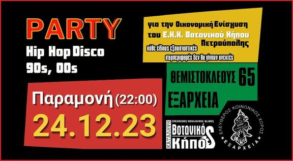 Το party γίνεται για την οικονομική ενίσχυση του Ε.Κ.Χ. Βοτανικού Κήπου.