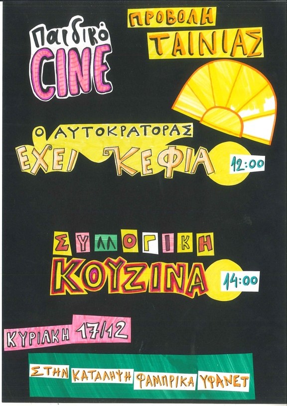 Την Κυριακή 17 Δεκέμβρη από τις 12:00 το cine yfanet θα πραγματοποιήσει προβολή για τα μικρά μας φιλαράκια