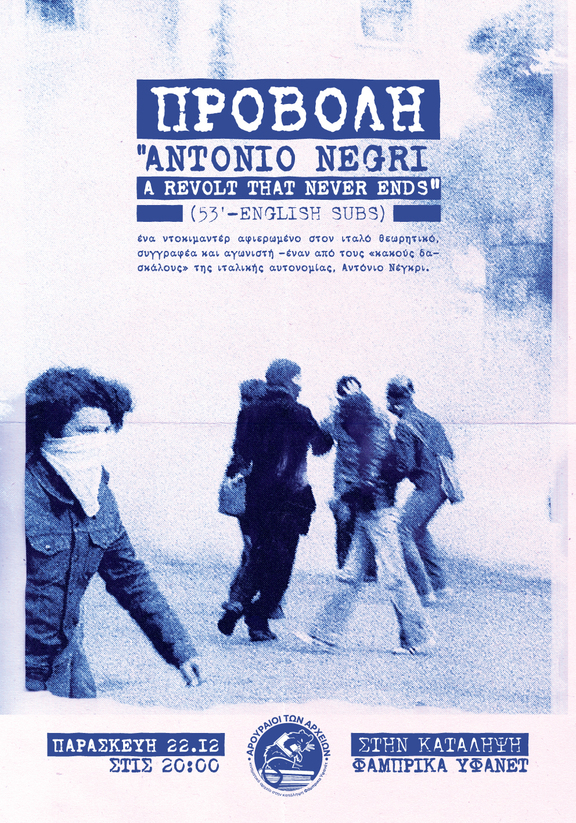 Προβολή "Antonio Negri- A revolt that never ends" (53'- αγγλικοί υπότιτλοι)