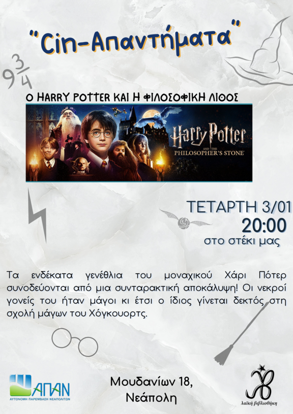 Τετάρτη 3/1: O Harry Potter και η φιλοσοφική λίθος